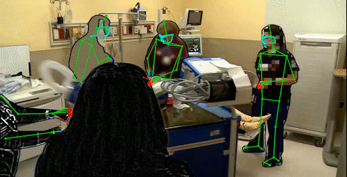 We have tried several pose tracking solutions, such as OpenPose (model 25B; Cao et al. (2021)), Mediapipe (default highest complexity blazepose model; Lugaresi et al. (2019)). We found that these models are not well equipped to track persons from top view, most likely because these models are not trained on ground-truth poses of persons from top-view camera angles. However, we found the heaviest model of YOLOv8 (“yolov8x-pose-p6.pt”) does perform very well, especially as compared to the other models we tested. Thus, for this pipeline we recommend using YOLOv8 model (Jocher, Chaurasia, and Qiu 2023) for top-view tracking. Always check tracking quality of the model that you use on your own dataset. YOLOv8 may not be the best fit for all datasets.
